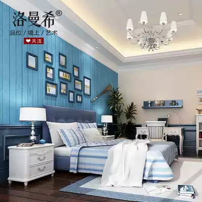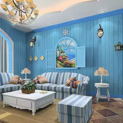 Mediterranean vertical stripe non-woven wallpaper retro blue nostalgic original wood grain living room dining room bedroom home decoration wallpaper