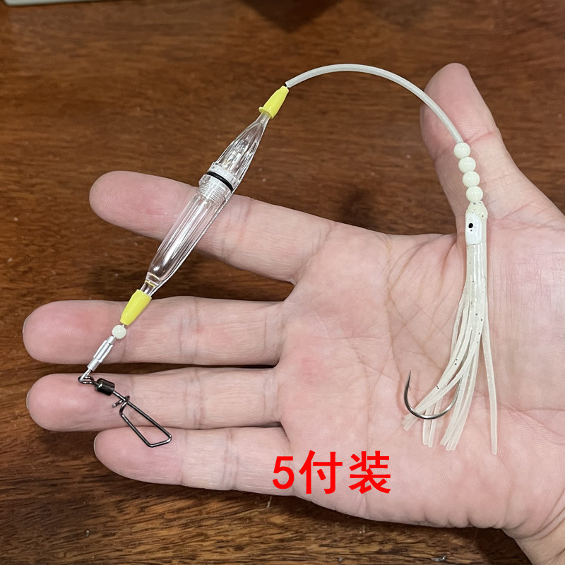 Double hook suit all night squid with a single hook set all night squid with a single-hook set 1 set of separate night squid with trapping lamp 5 paid double-colored fish-luggage lamp with battery 5 fitted tail wing