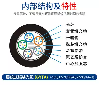 24-core national standard outdoor single-mode fiber optic cable layer stranded GYTA S-24B1 3 thickened steel wire outdoor armored fiber optic cable light armor