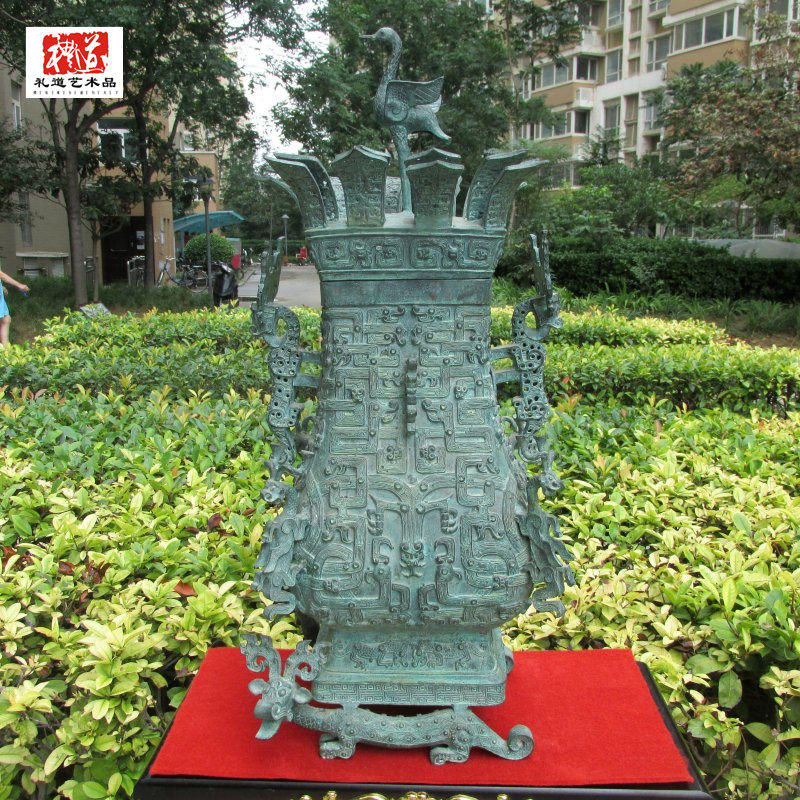 Zhengzhou Bronze Craft Gift Decoration Ding Pot Lotus Crane Square Pot Large Decoration Henan Unearthed Tourist Souvenirs Large Pure Copper