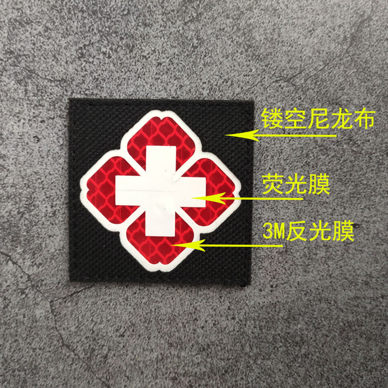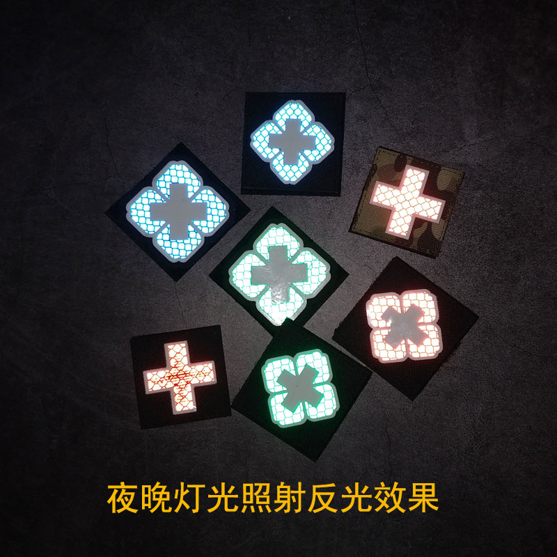 Reflective rescue patch A red reflective rescue patch A blue reflective rescue paste A section of a green reflective rescue post B with a red reflective rescue post B with a blue reflective rescue post B with a green reflective rescue patch C