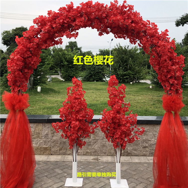 New cherry blossom flower door Silk flower arch Wedding happiness door opening activity arch props Wedding ceremony door
