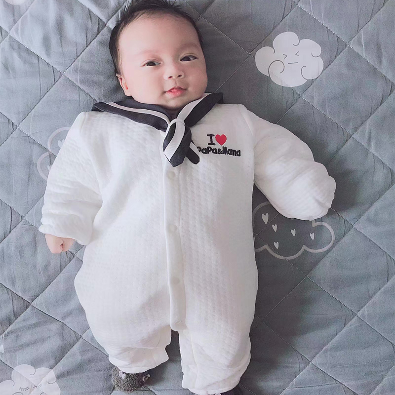 Baby three - layer cotton baby conjunction clothes spring and autumn pure cotton naval wind climbed to newborn 0 - 3 months halo tide