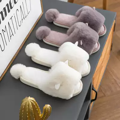 Nordic ins tide cotton slippers women's thick bottom winter Korean version of cute plush warm indoor non-slip home household