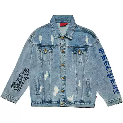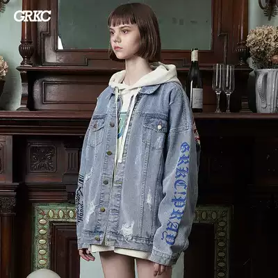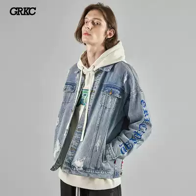 GRKC destruction graffiti denim jacket National Tide brand Hip Hop couple loose Street men and women with casual jacket