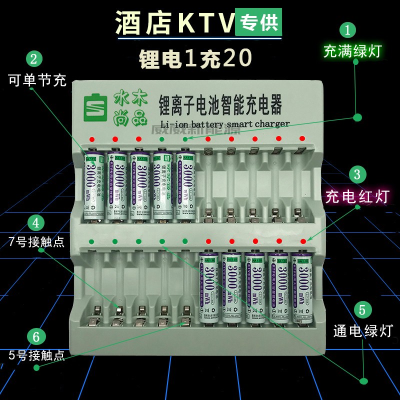 KTV battery charger can be filled with 5 7 No. 7 lithium battery full of self-stop 20 groove intelligent quick-charging wireless wheat special