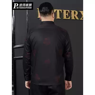 Large size long sleeve shirt loose men's trend printing casual top fat plus size autumn new business shirt