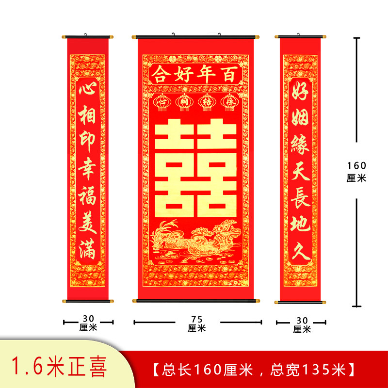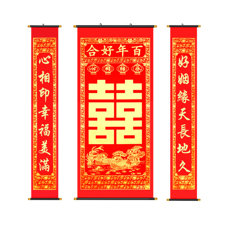 Chinese wedding hall hanging painting couplet wedding wedding decoration decoration couplet flocking festive happy word happy union wedding union