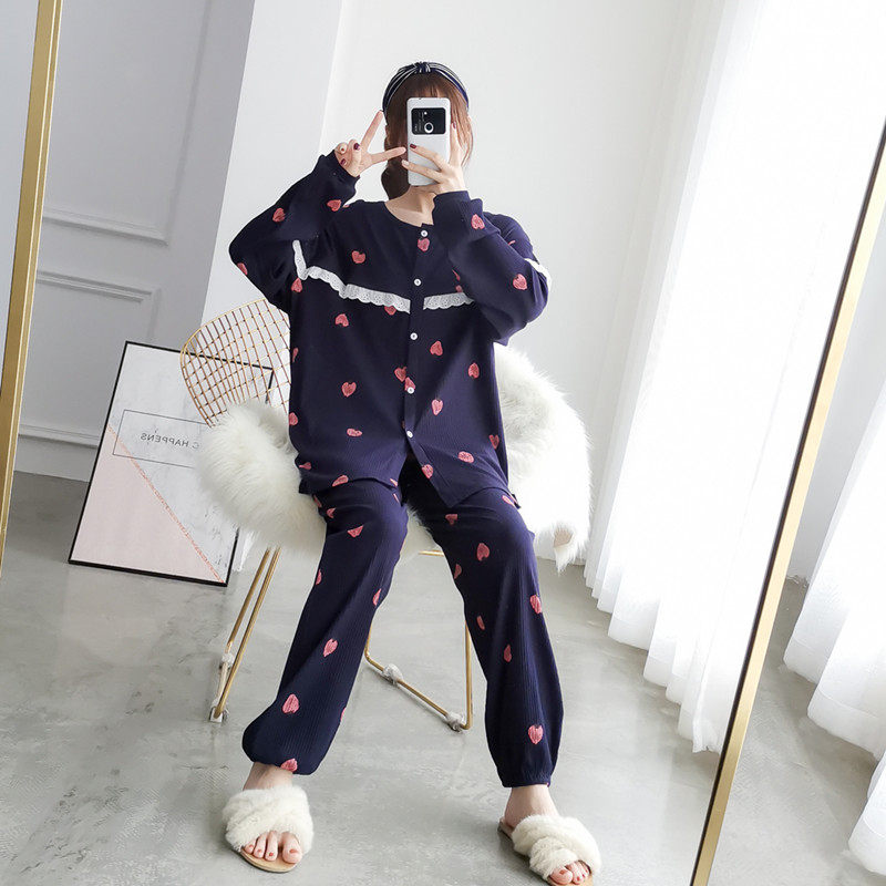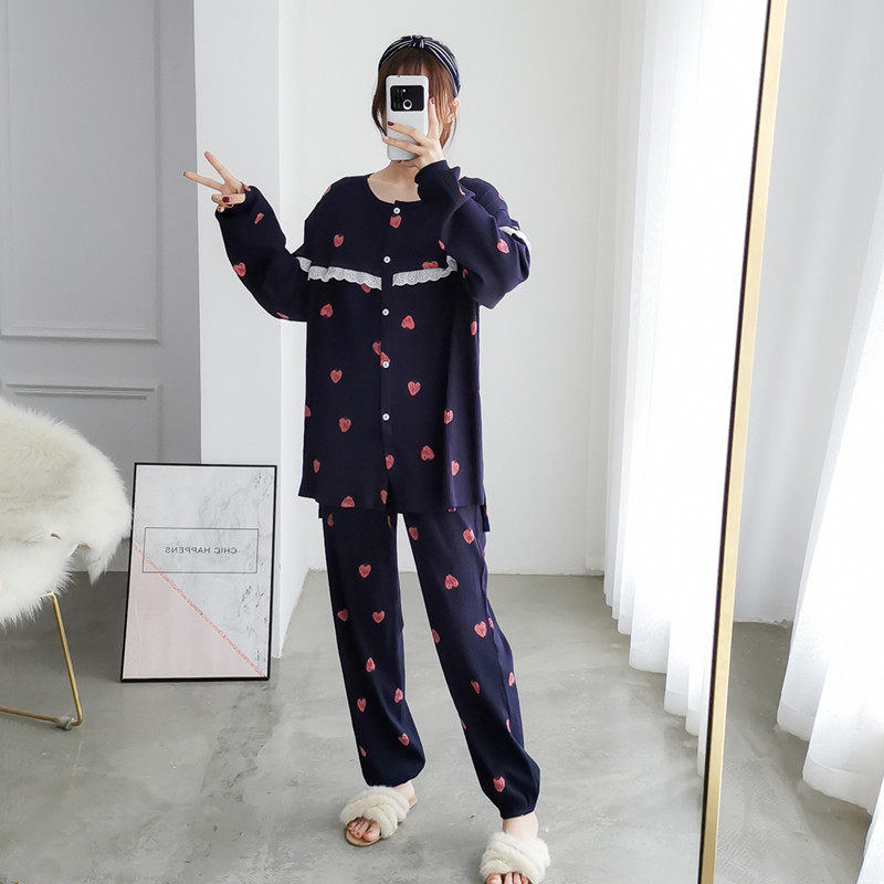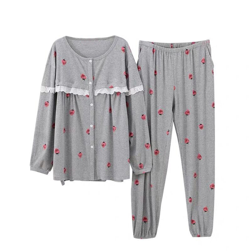 Spring and Autumn Maternity Cardigan Strawberry Pajamas Women's Long Sleeve Cotton Plus Size Loose Fat MM Postpartum Breastfeeding Confinement Clothes