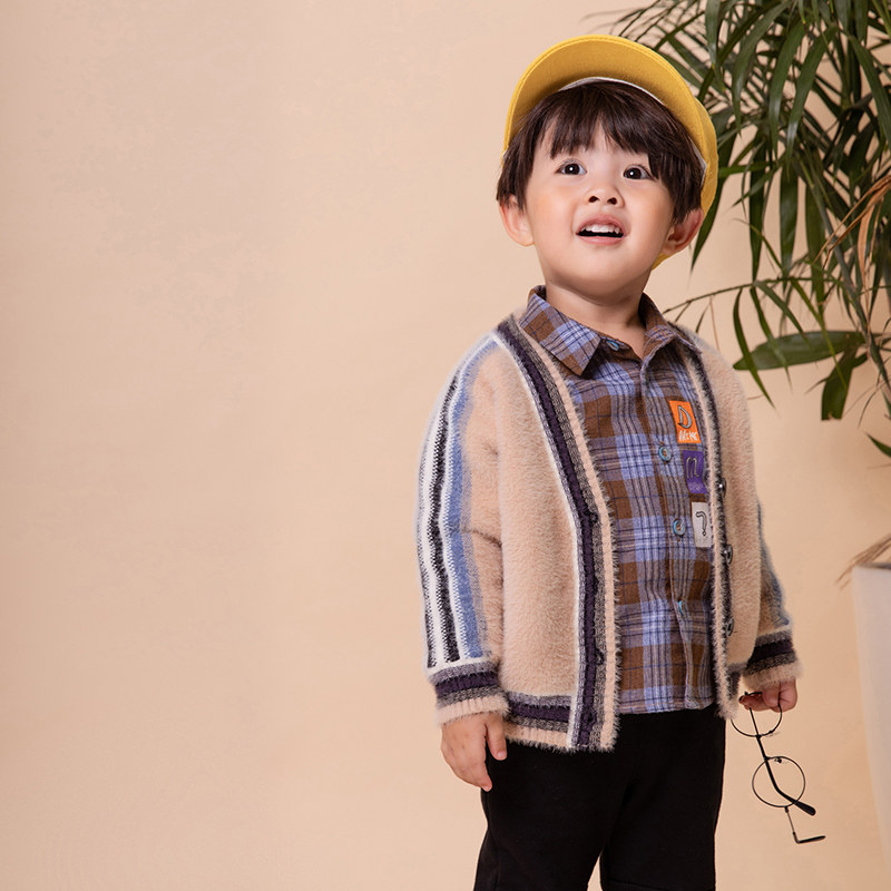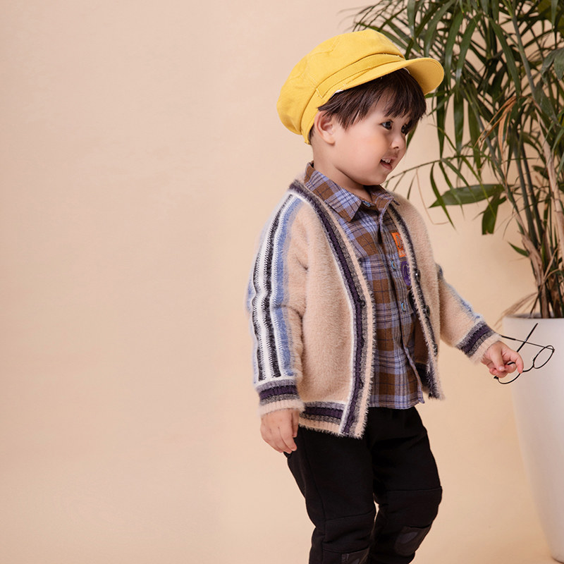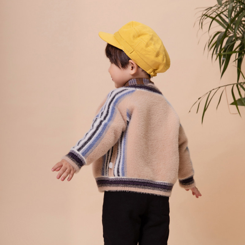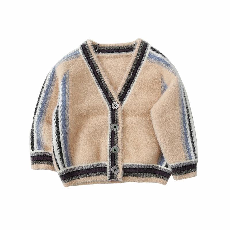 Boys sweater spring and autumn coat knitted cardigan children's clothing baby baby new plush sweater children's sweater