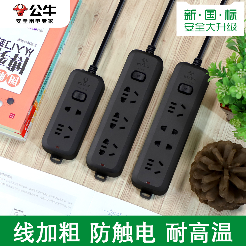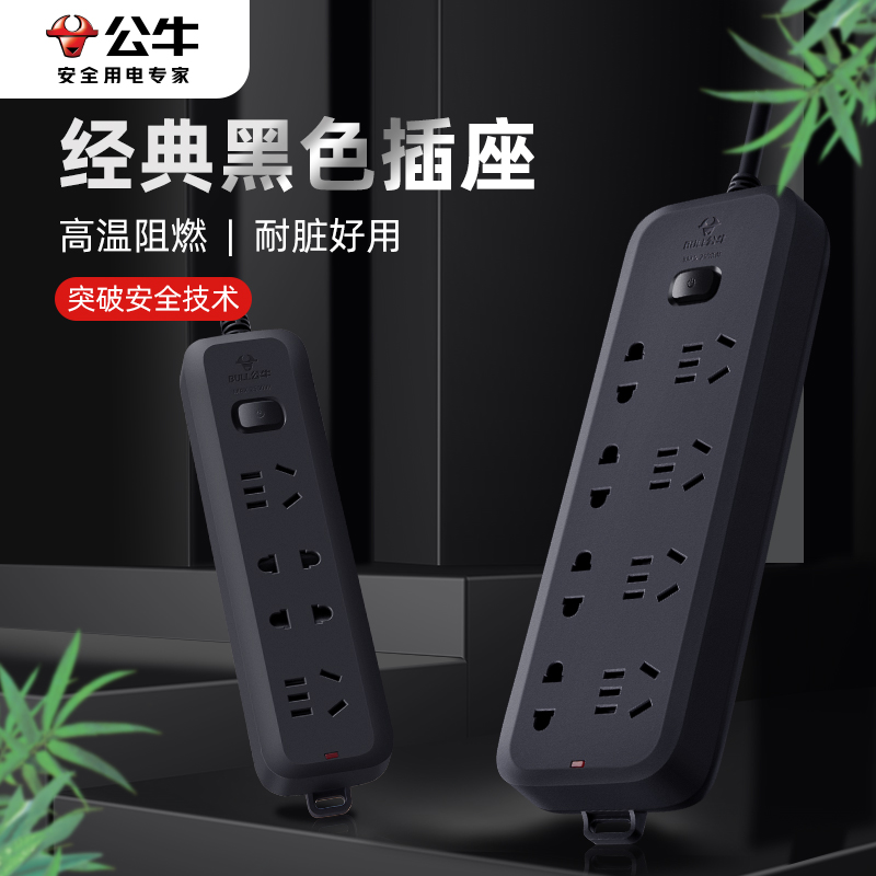 Bull plug-in long-line socket multi-function wiring board with switch household black plug-in board with line plug-in board
