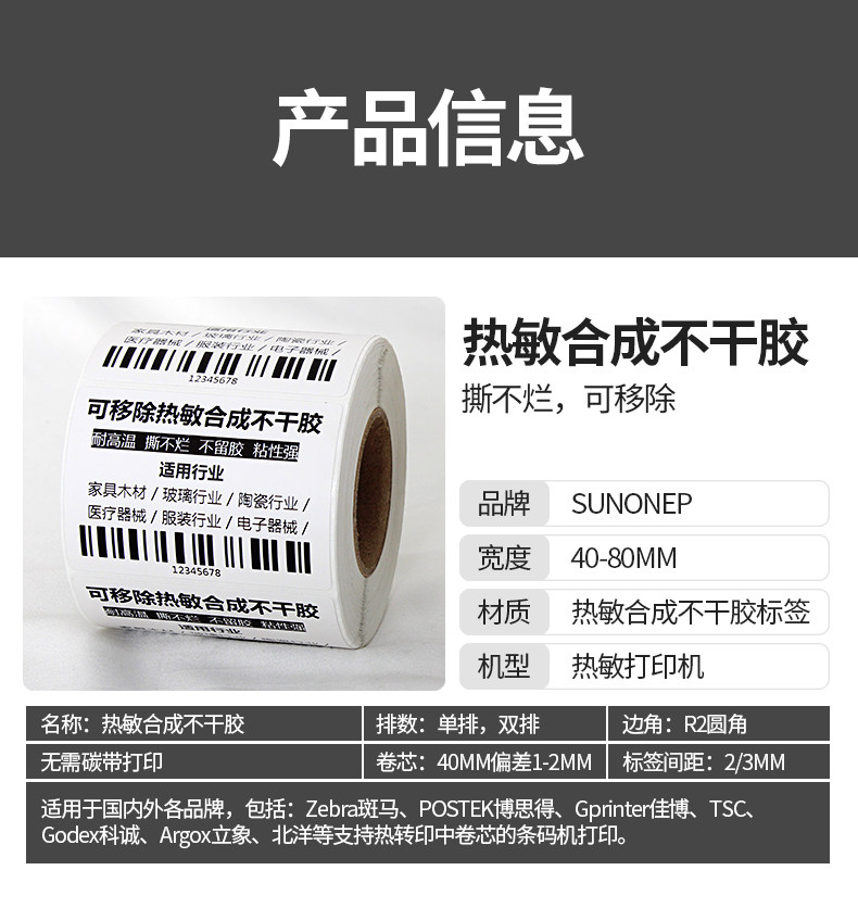 Easy to tear without leaving glue three anti-removable label paper 40*30 50 60 70 80 thermal synthetic paper self-adhesive waterproof removable adhesive glass furniture sticker label printing paper