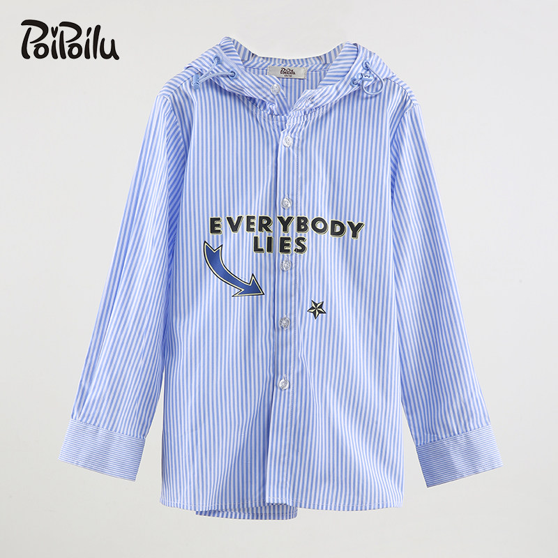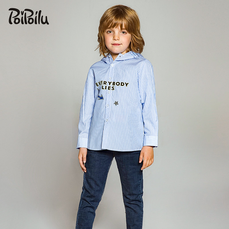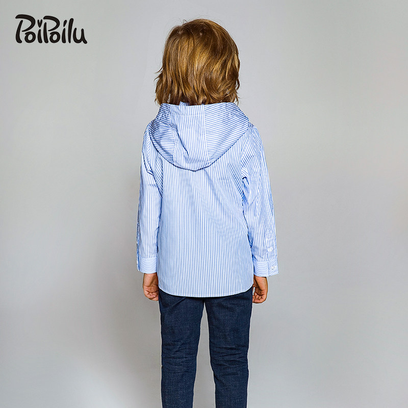 Boy blouses striped shirt with cap CUHK child long sleeve pure cotton slim fit Chauded boy shirt Spring and autumn clothing for children