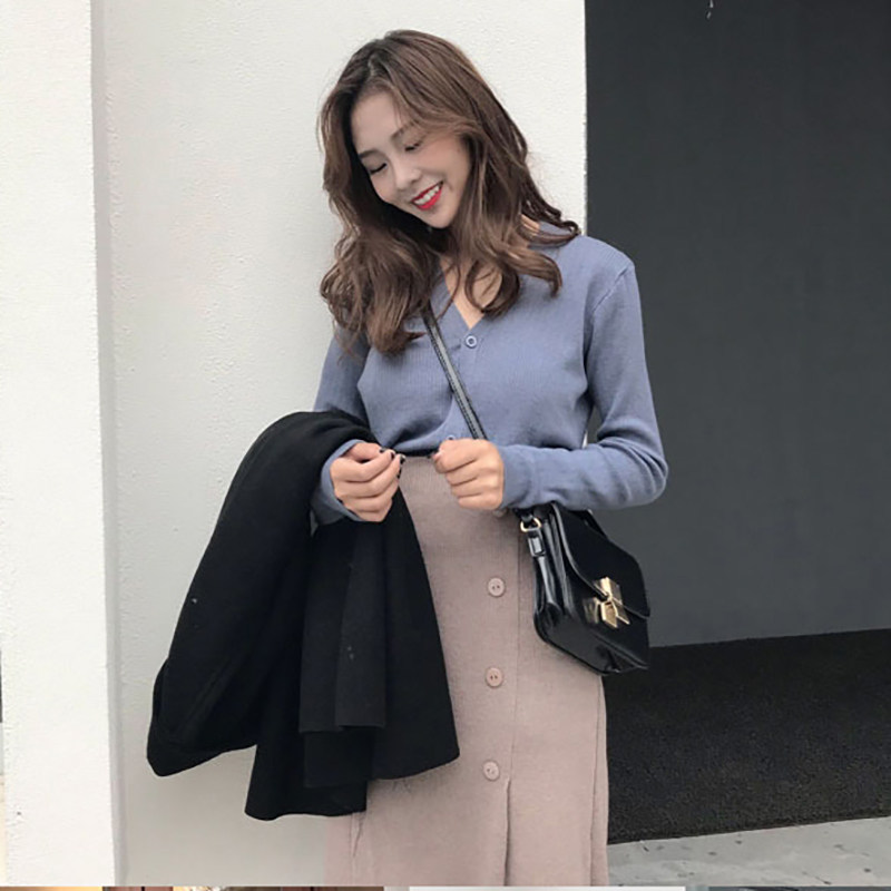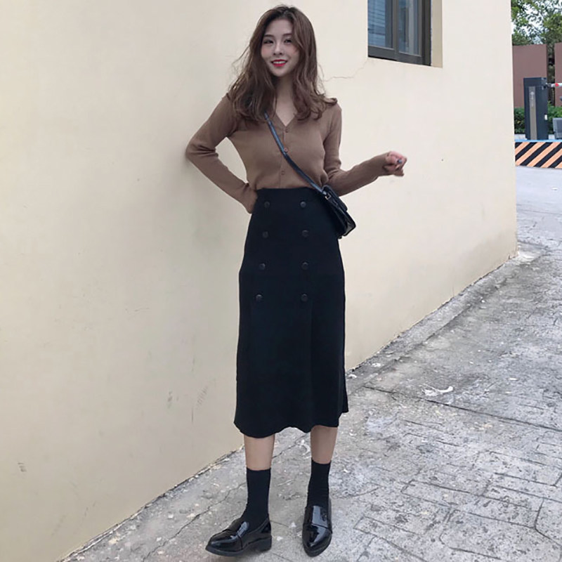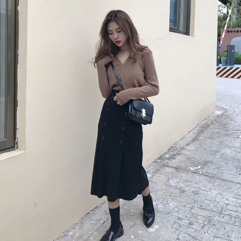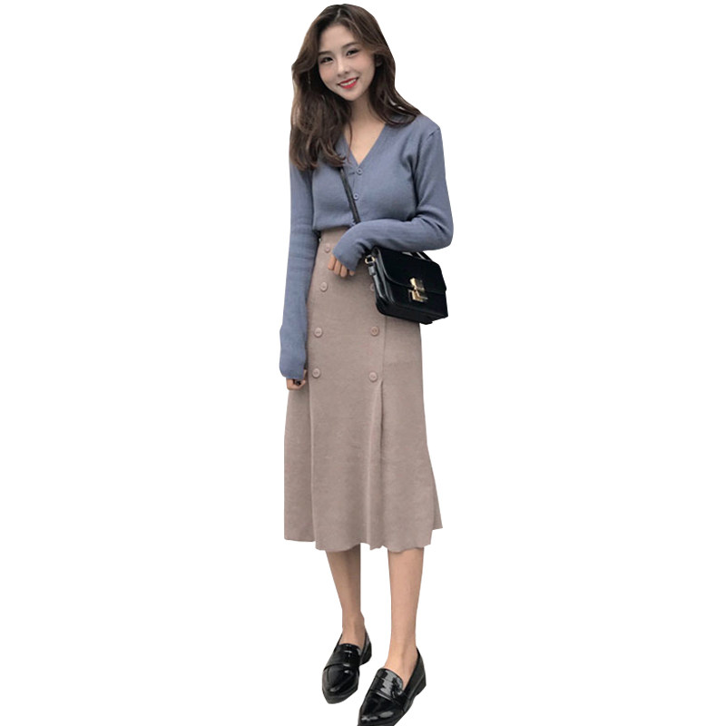 Blue top light gray skirt (gentle wind light cooked wind niche popular Royal sister style socialite small fragrance fashion temperament age reduction spring and autumn) Camel top black skirt (autumn belly flow