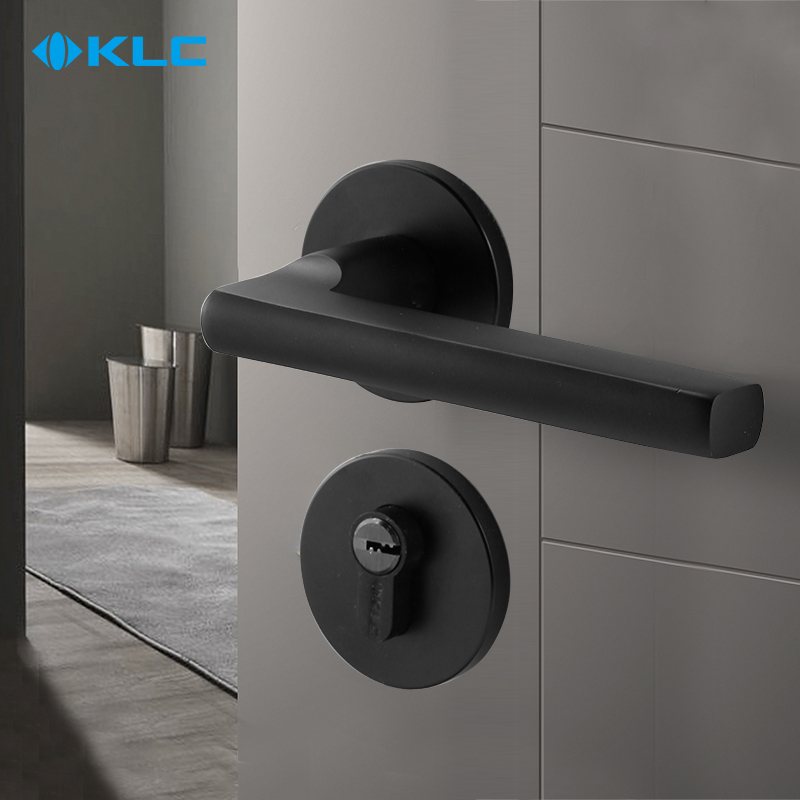 KLC door lock Indoor bedroom silent room door lock Black powder room solid wood door handle Household universal lock