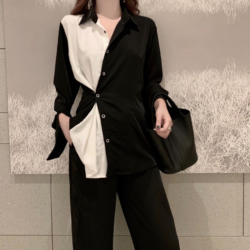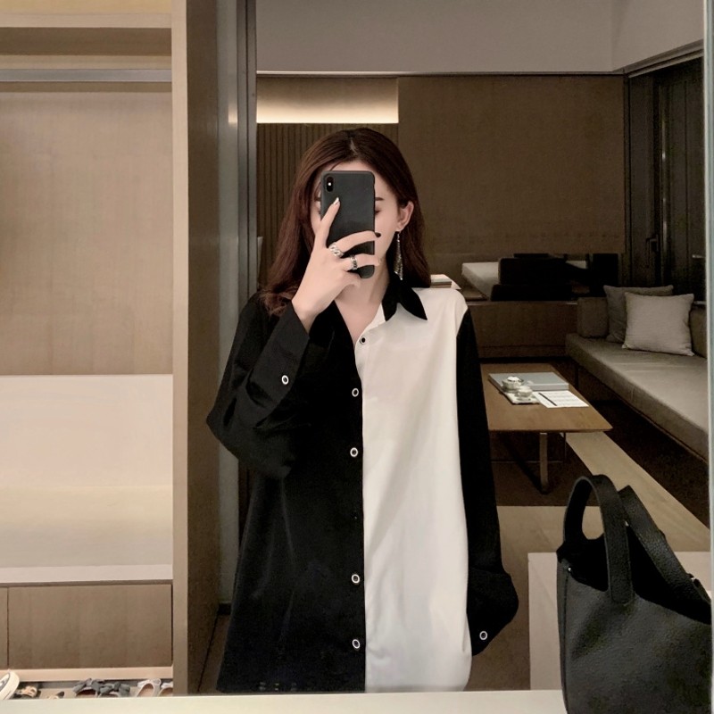 Black and white stitching shirt S Black and white stitching shirt M Black and white stitching shirt L
