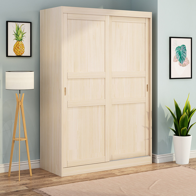 Wardrobe Solid Wood Ramen Sliding Door Home Solid Wood Pine Wood Wardrobe Log Children Storage Large Closet Minima Modern