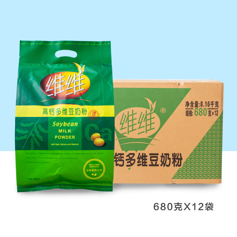 Weiwei high calcium multidimensional soy milk powder full box 680gX12 bags of nutritional breakfast brewed instant soy milk powder