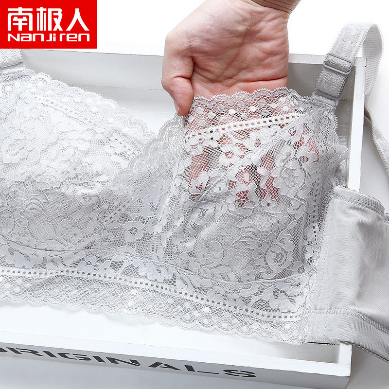 Antarctic underwear women's ultra-thin big chest display small bra without rims Large size closed pair of breasts gathered lace beauty back bra
