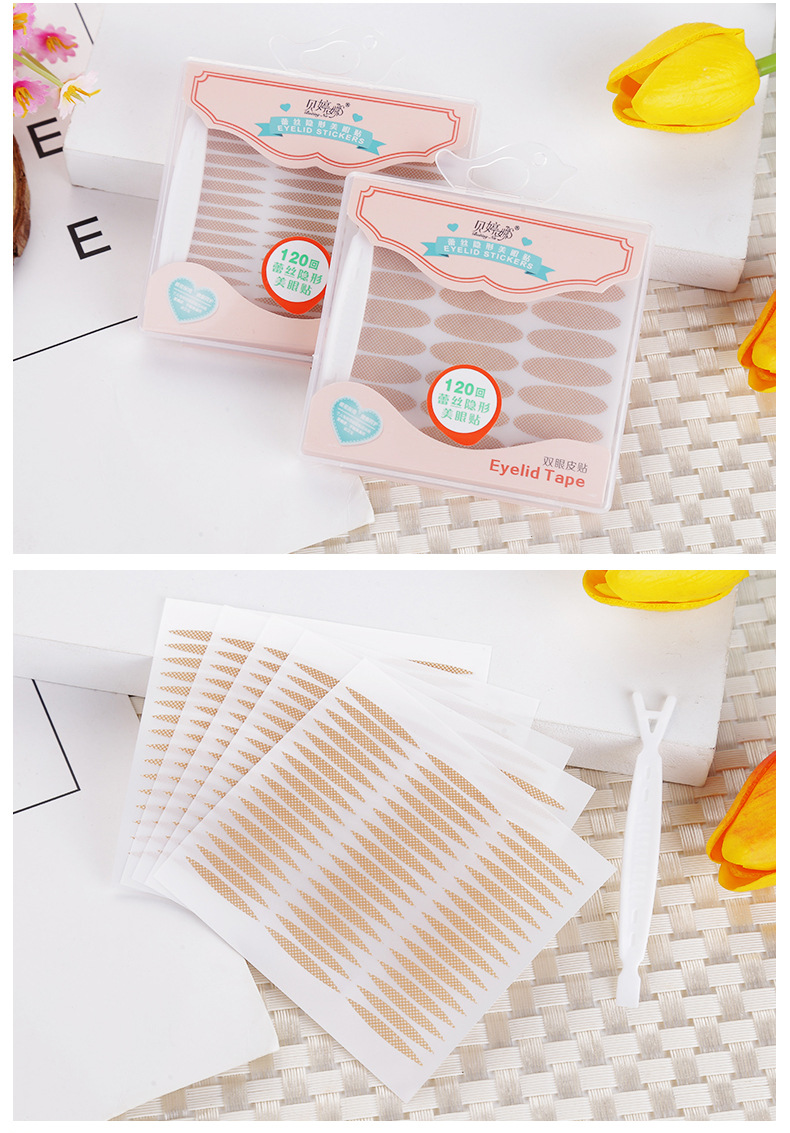Square Box Natural Complexion Mesh Lace Ultra Invisible Beauty Eye Membranes 120 Back Breathable Natural Olive-Shaped Double Eyelets