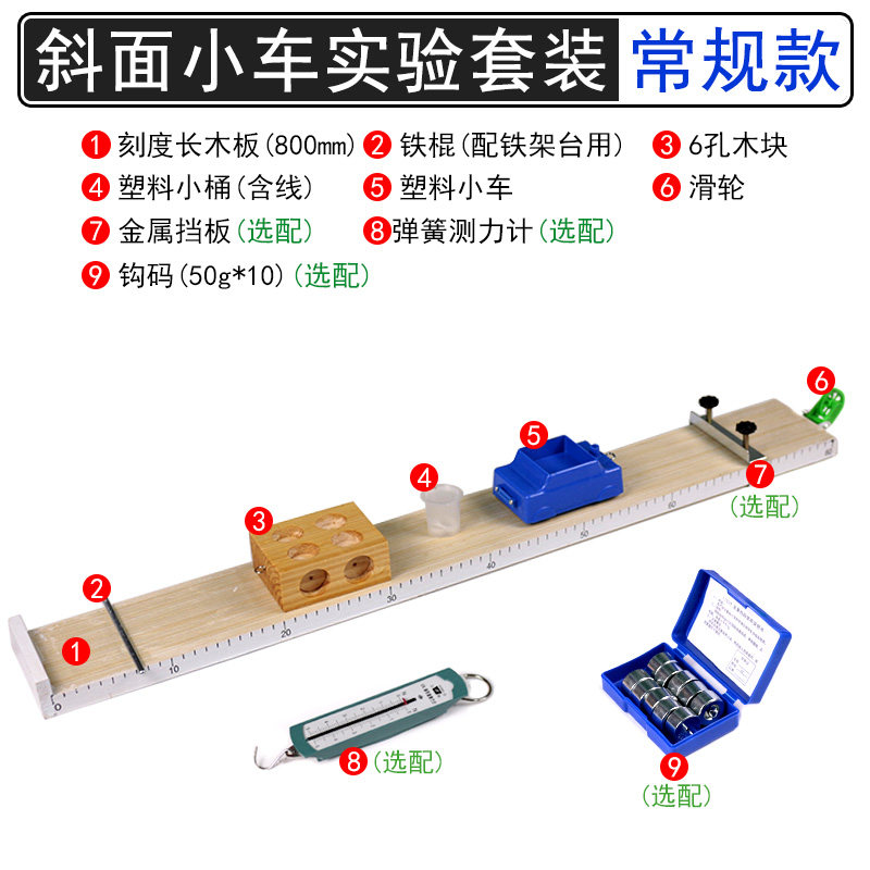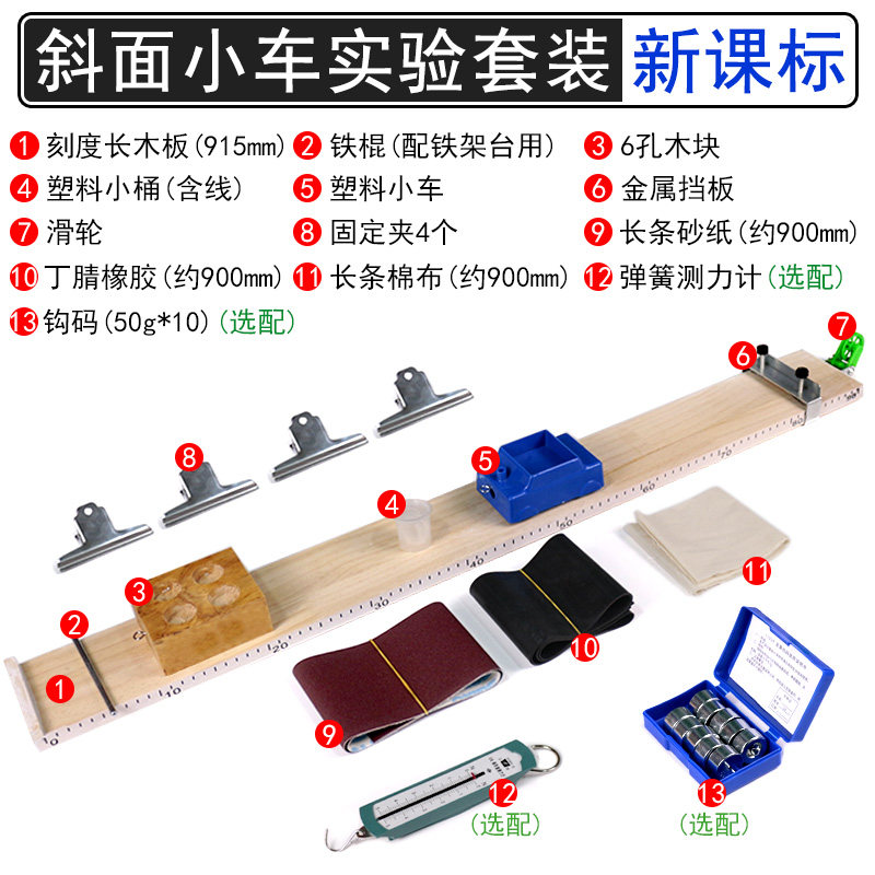Bevel trolley complete set of devices new class mark junior high school physics mechanics experimental equipment teaching instruments with pulley with scale long wood board measuring average speed friction force influencing factor rubber cotton cloth