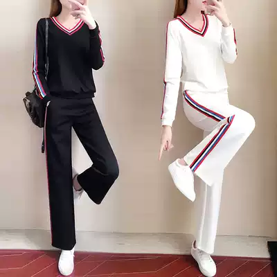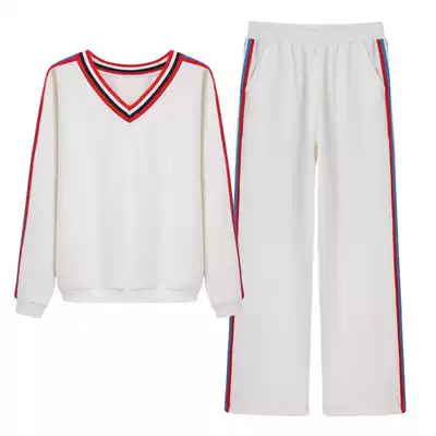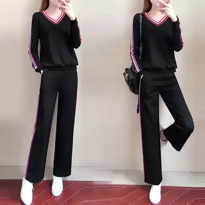Sports set female 2021 Autumn New Korean version of temperament V-collar slim fashion foreign style wide leg pants two-piece tide