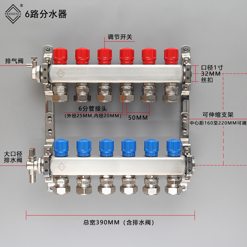 25 Floor Heating Pipe water distributor Large flow 6 Sub geothermal tube Stainless Steel Diversity Sprinkler large caliber 5-way 6-way 7-way 8