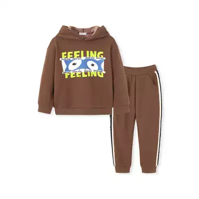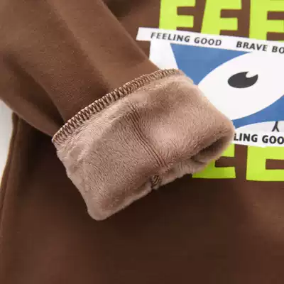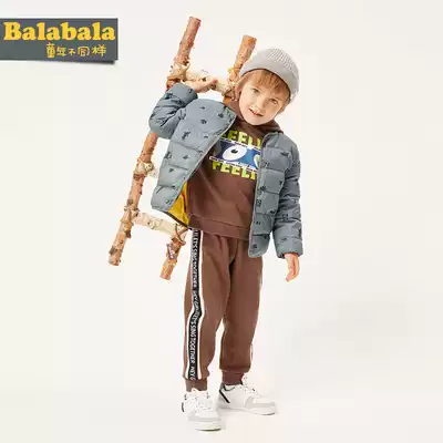 Balabala boys long sleeve suit children sportswear 2021 Winter new small children plus velvet two-piece tide