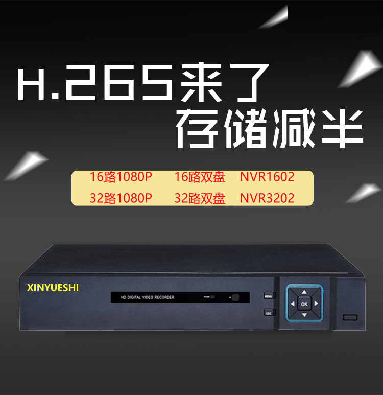 Xiongmai 32-way 4K two-disk network NVR embedded hard disk video recorder mobile phone monitoring eye remote fully compatible with 265