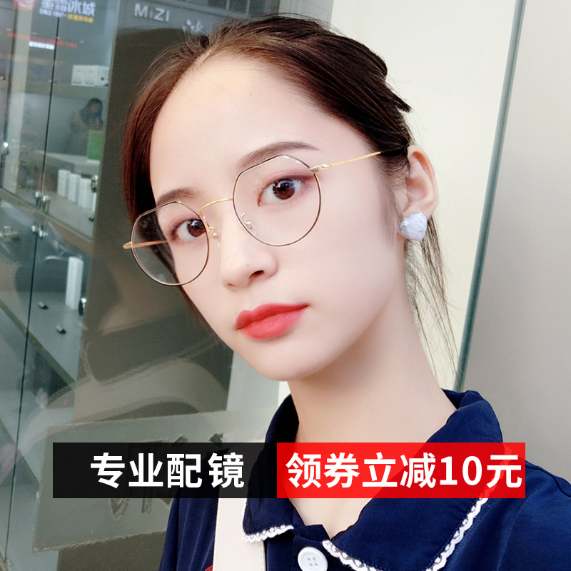 Myopia Glasses Female with degree Lean Round Face Polygon Male small face fit titanium Eye frame Han version Tidal Net Red