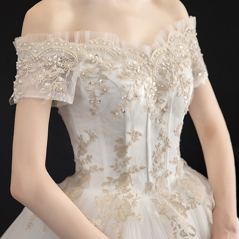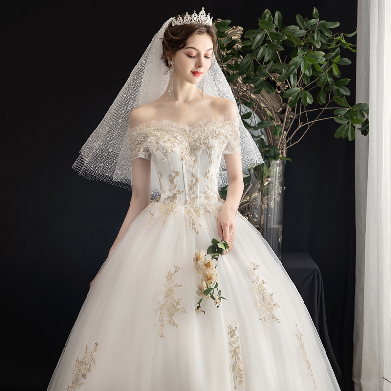 Fan-style light wedding dress 2022 new bridal main yarn small sub-lined with short sleeves to go out and veil for a rough arm