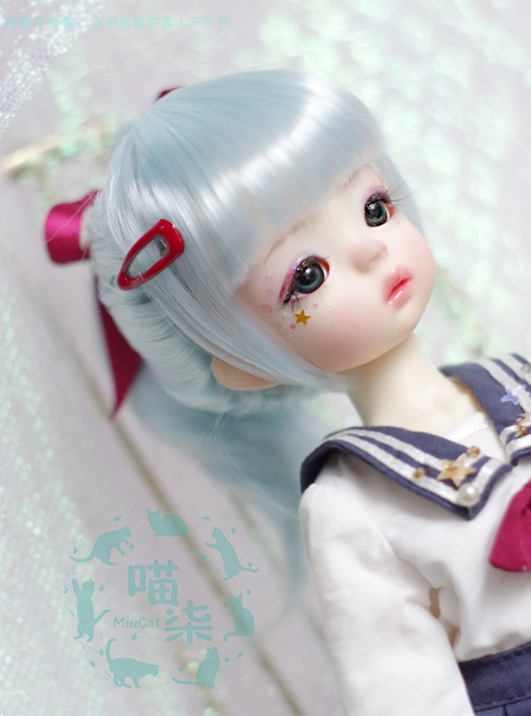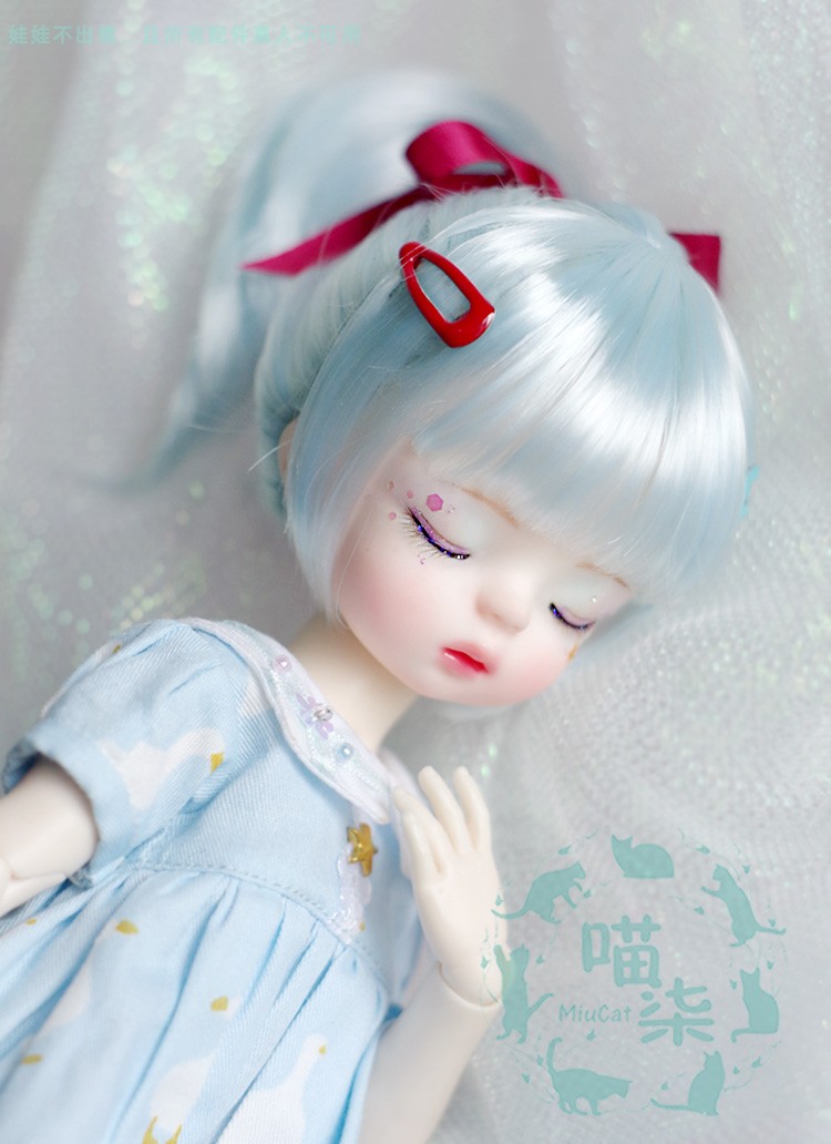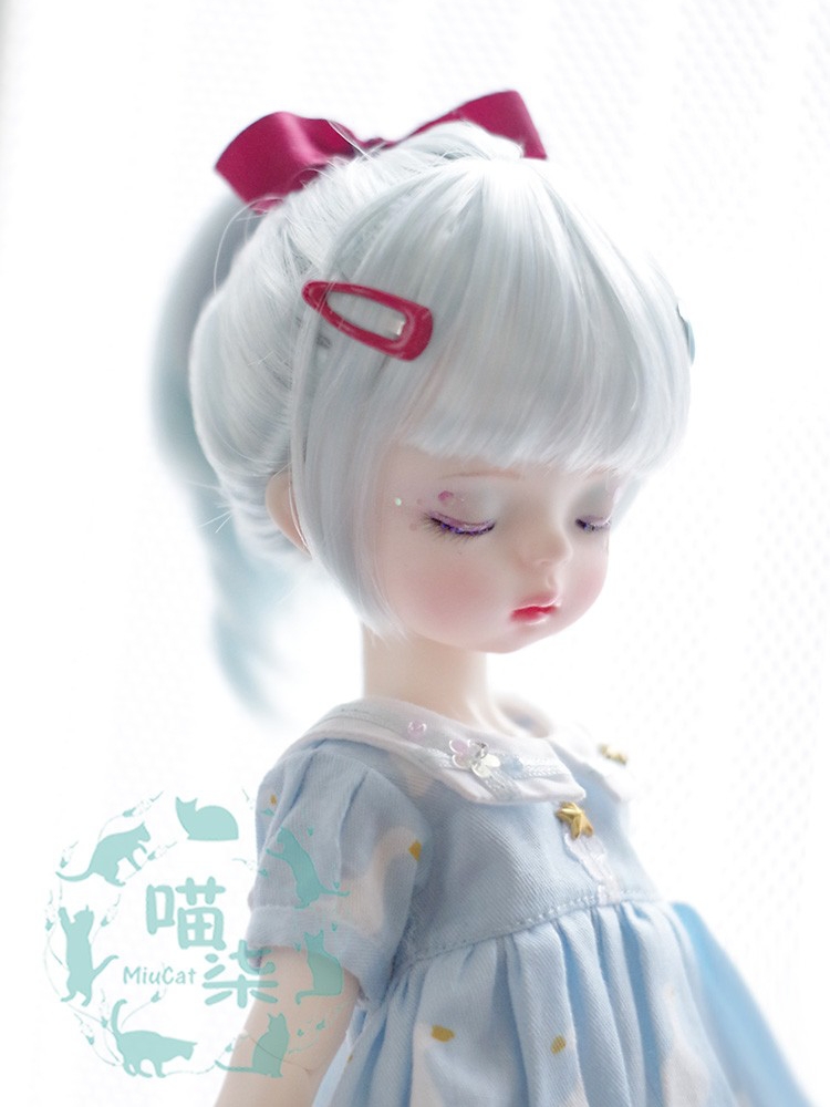 BJD baby wig soft silk high ponytail braid 6 points 4 points 3 points giant baby blue with ribbon milk silk