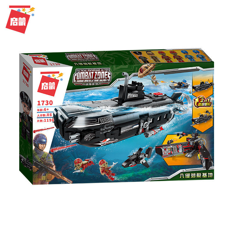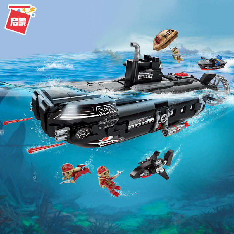 Enlightenment Building Blocks Toy Invasion Submarine Base Men's Kids Assembly Model Children Parquet Military Models