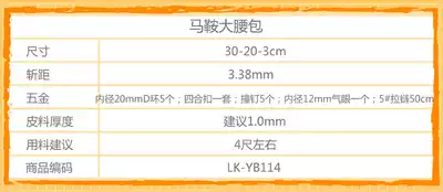 LK-YB114 handmade leather DIY drawing layout custom cut hole precision cutting ox card saddle Big running bag