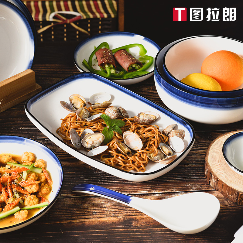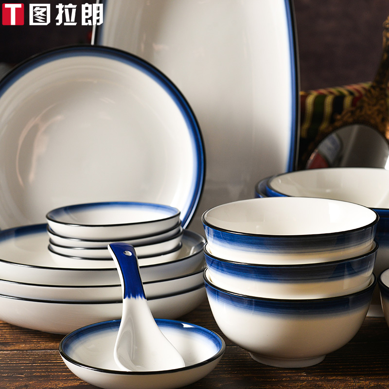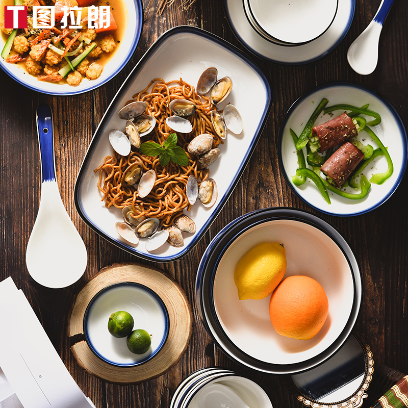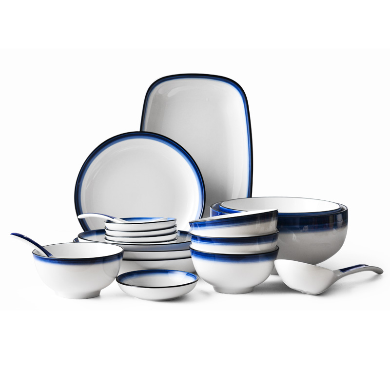 Nordic wind blue edge ceramic suit 36 pieces fit for 7-8 people] Nordic windy blue edge ceramic suit 27 pieces fit for 5-6 people] Nordic windy blue edge ceramic suit 8 pieces fit for 2 people]