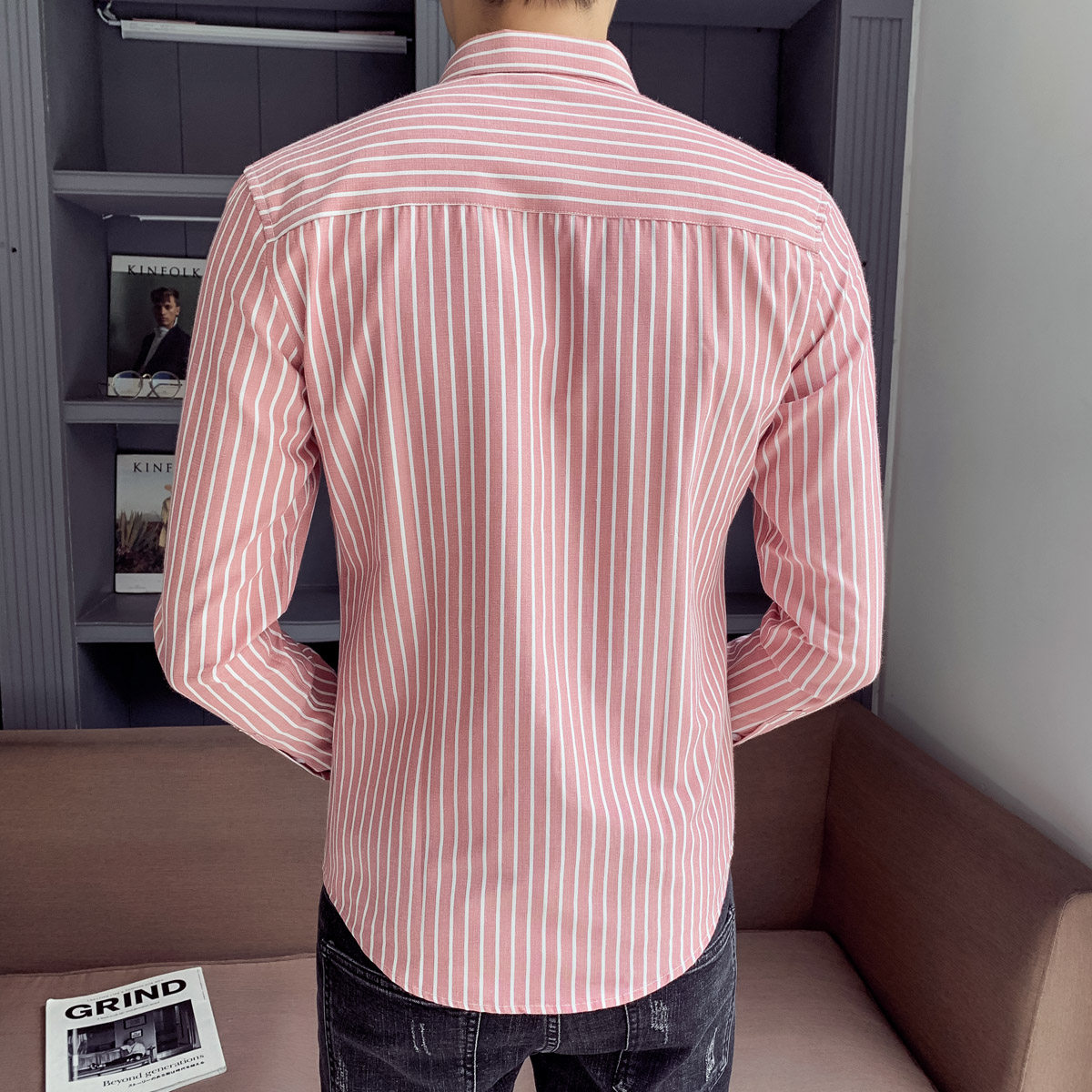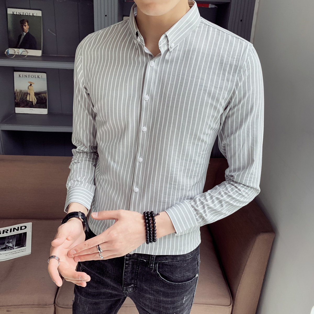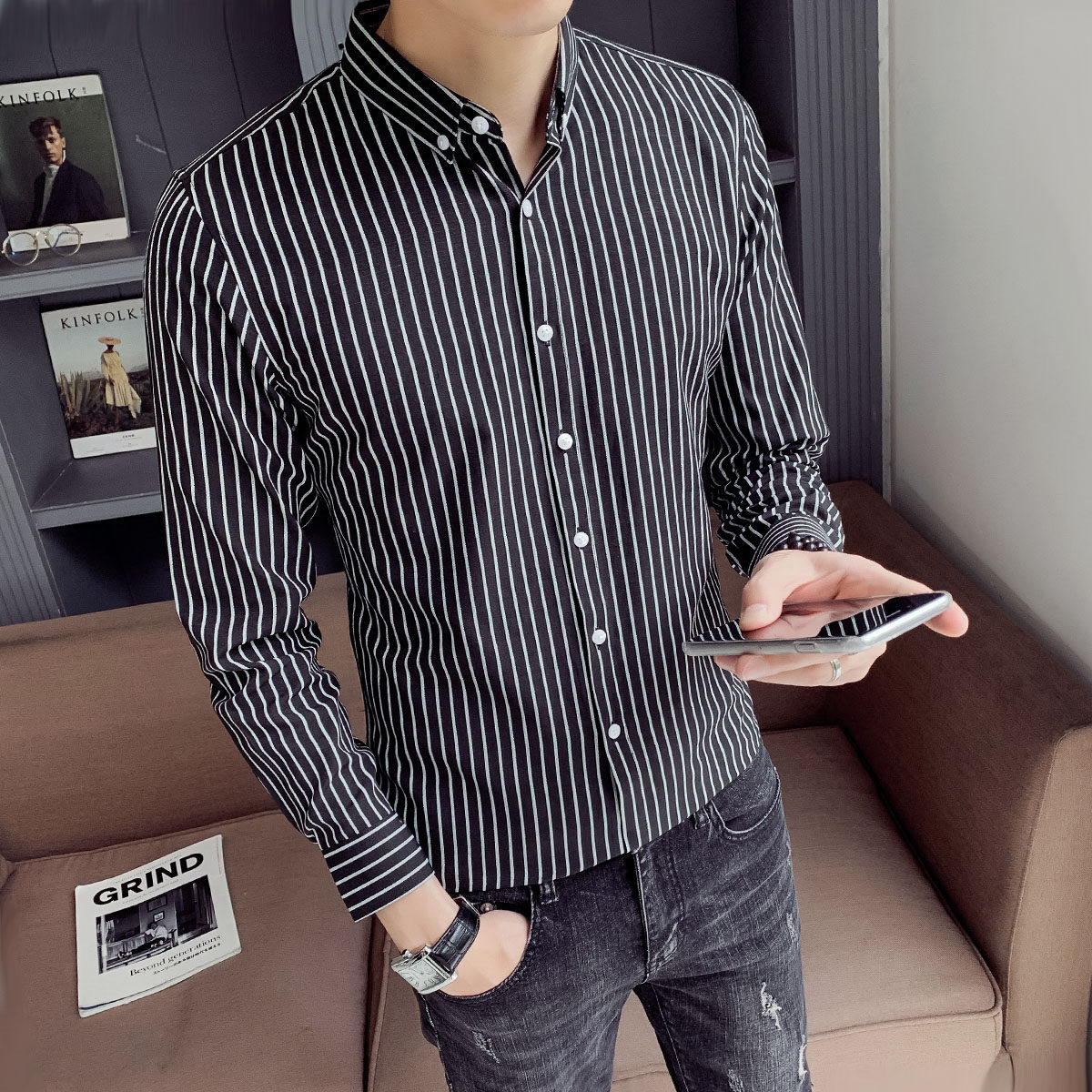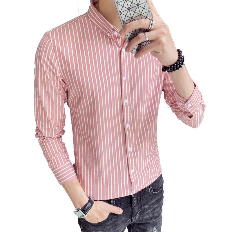 Spring and autumn striped shirt men's long-sleeved Korean version of the trend slim fit handsome inch clothing casual shirt men's shirt men's