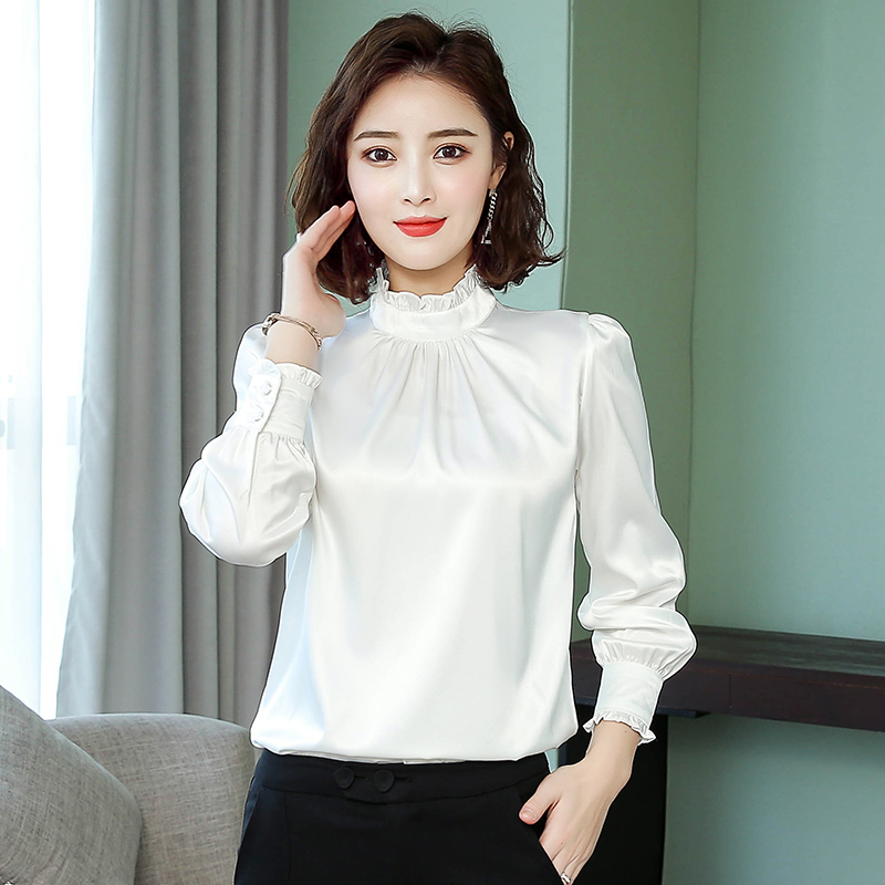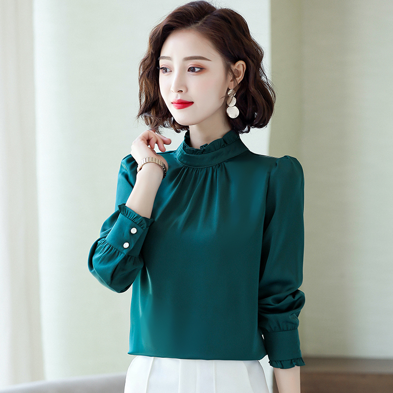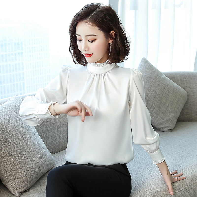 Stand-up collar chiffon shirt women's long-sleeved white shirt 2022 spring and autumn new loose western-style top bottoming shirt inch