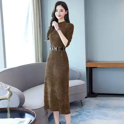 Long-sleeved autumn dress 2020 autumn new women's fashion Korean version of the socialite slim slim bottoming skirt