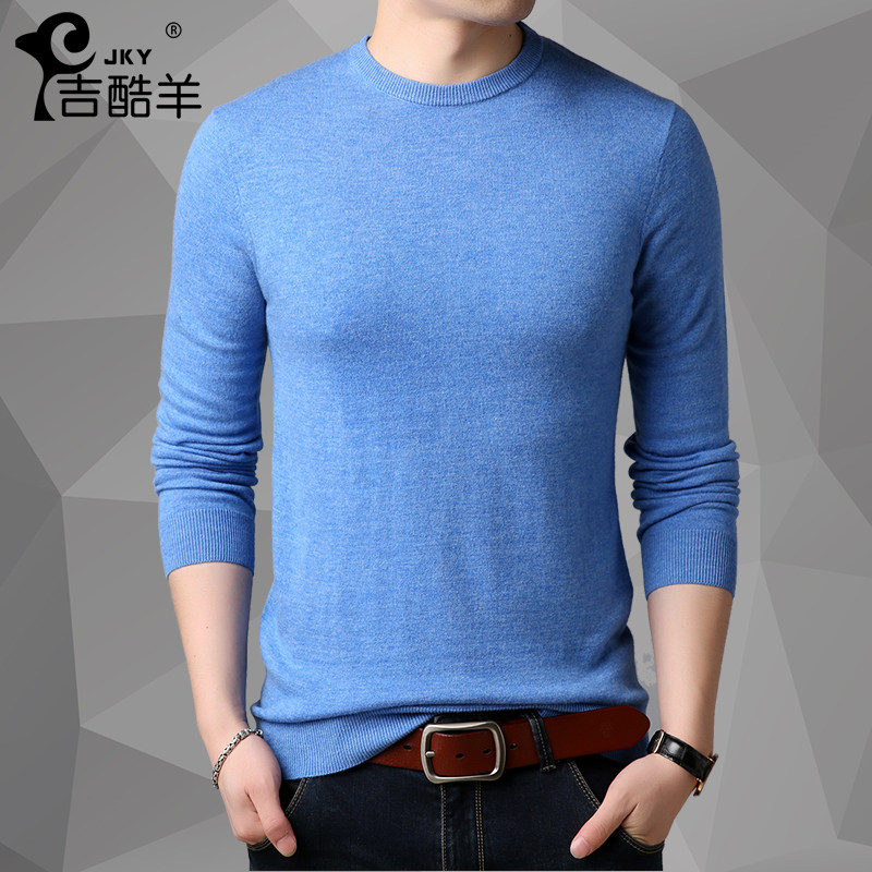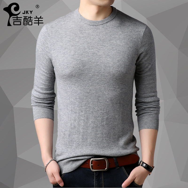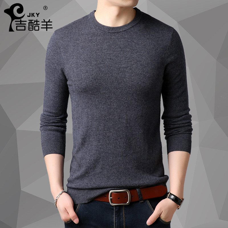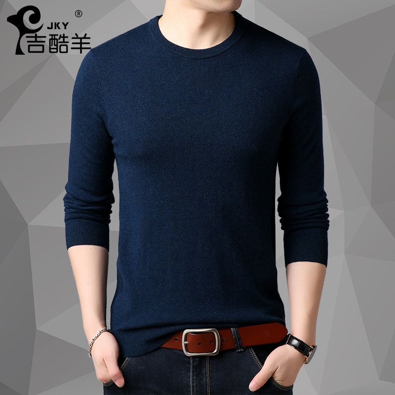 Men's cardigan crewneck youth solid color trend sweater autumn winter middle age thick knit shirt long sleeve T-shirt