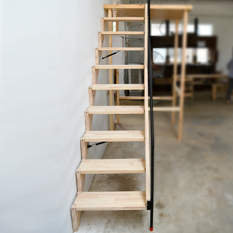 Custom indoor household solid wood overall attic stairs against the wall folding telescopic thickening simple wind invisible wooden ladder