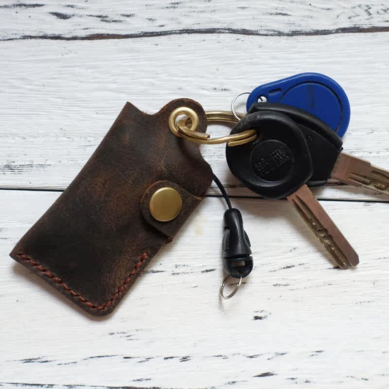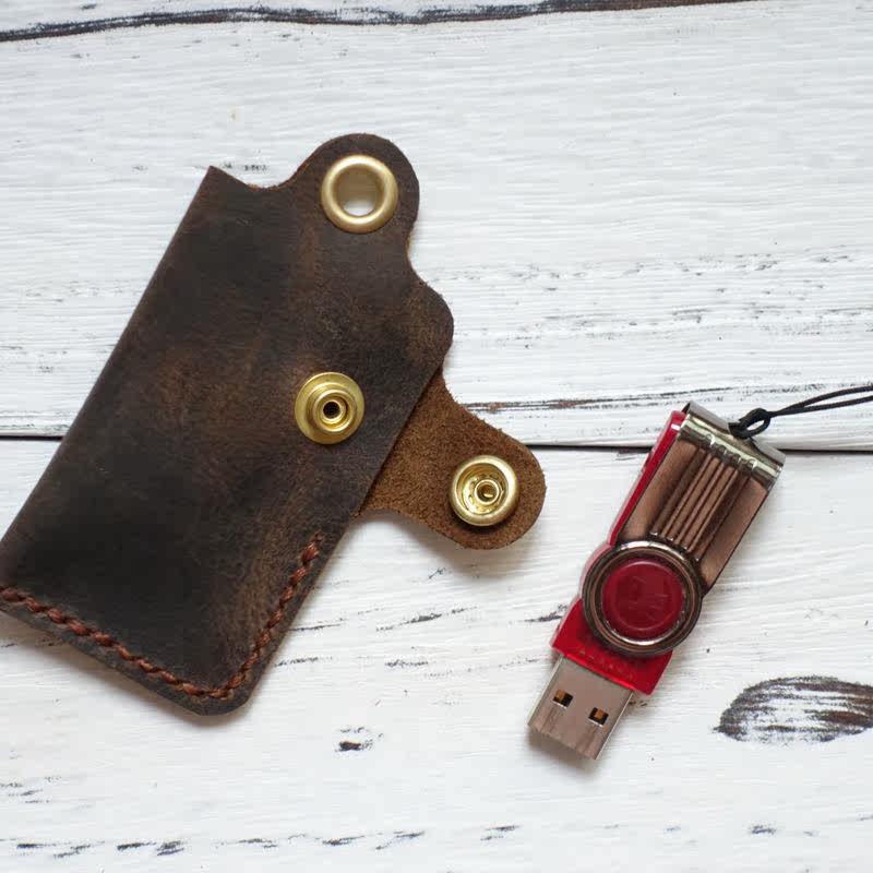 Genuine leather U disc protective sleeve Mini U shield containing small bag protective sleeve portable cortical key anti-lose leather cover inclined