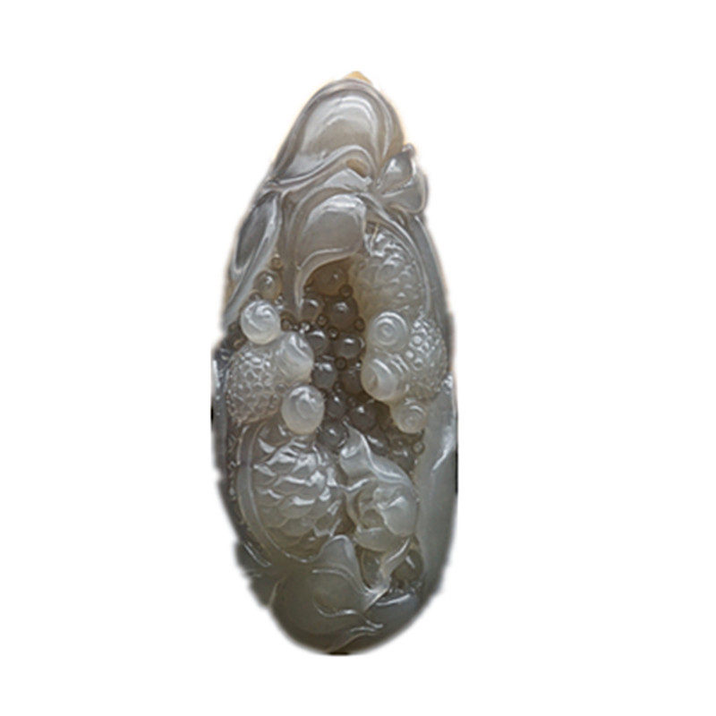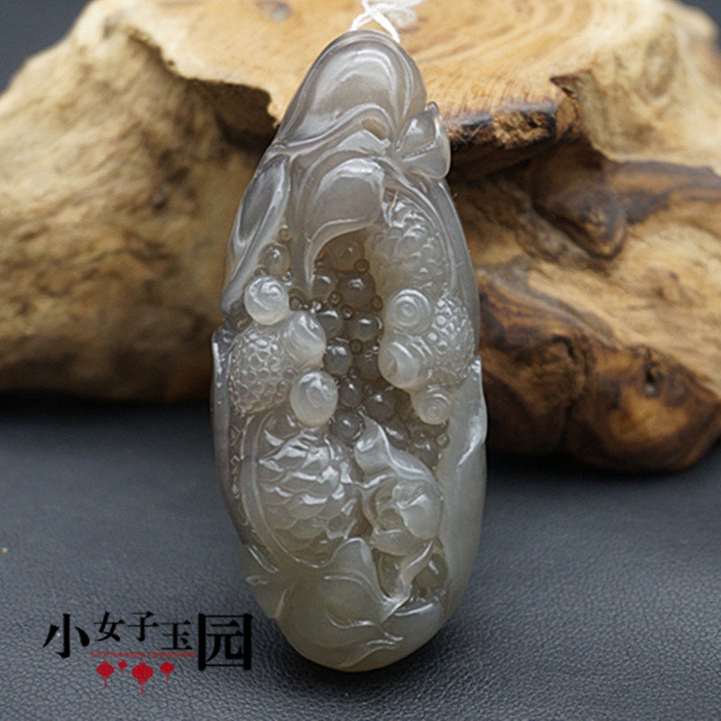 Qinghai material smoke green jade for consecutive years there are Yu yu pei jade pendant and Tian Yu pisces lotus pendant pendant sweater pendant neck ornament