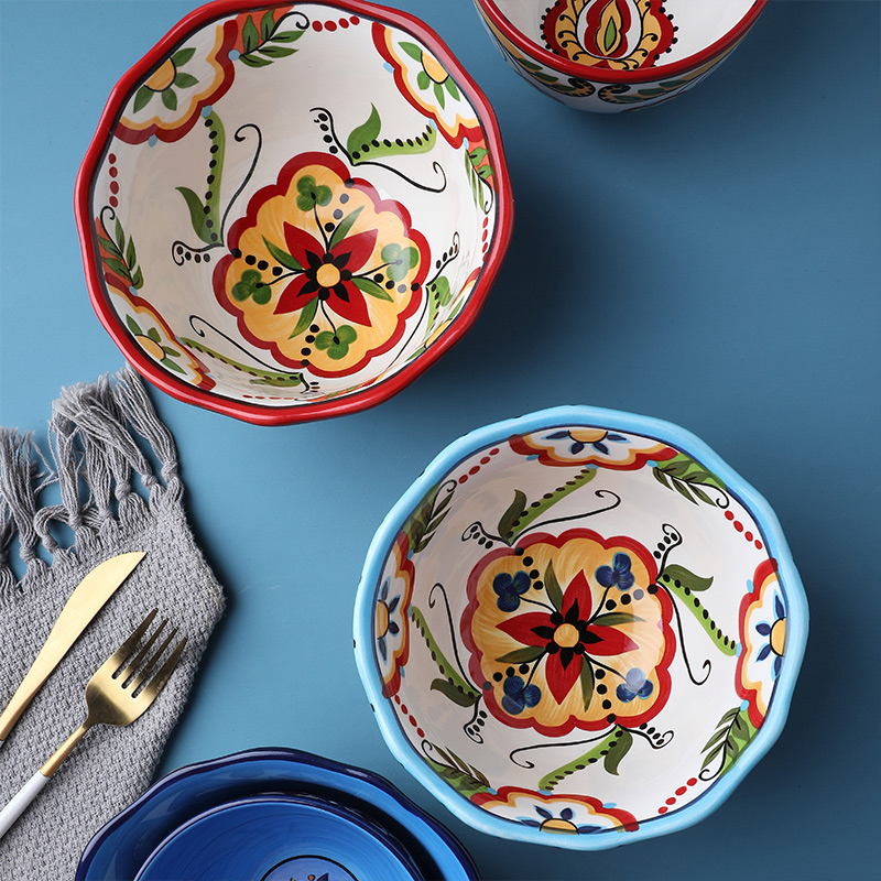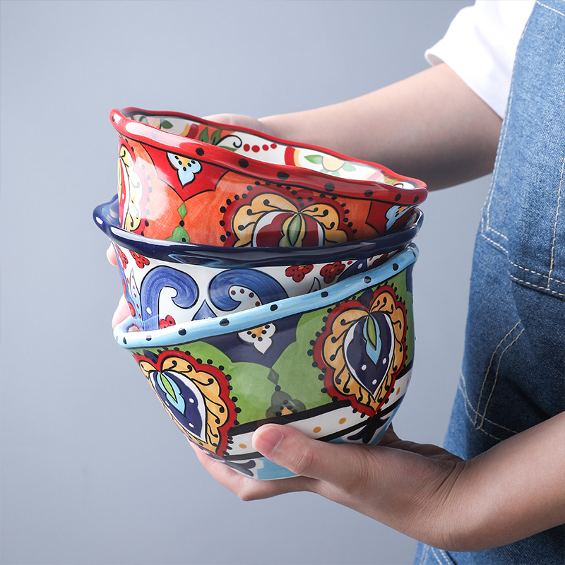 Bohemian personality hand-drawn ceramic bowl with rice horn bowl of big soup bowl of cereal bowl of salad round bowl