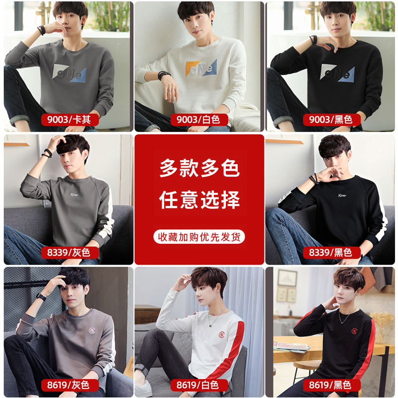 Sweater men's Korean version Trend round collar loose letter embroidered undershirt men's clothing spring and autumn blouses Long sleeves T-shirt for men