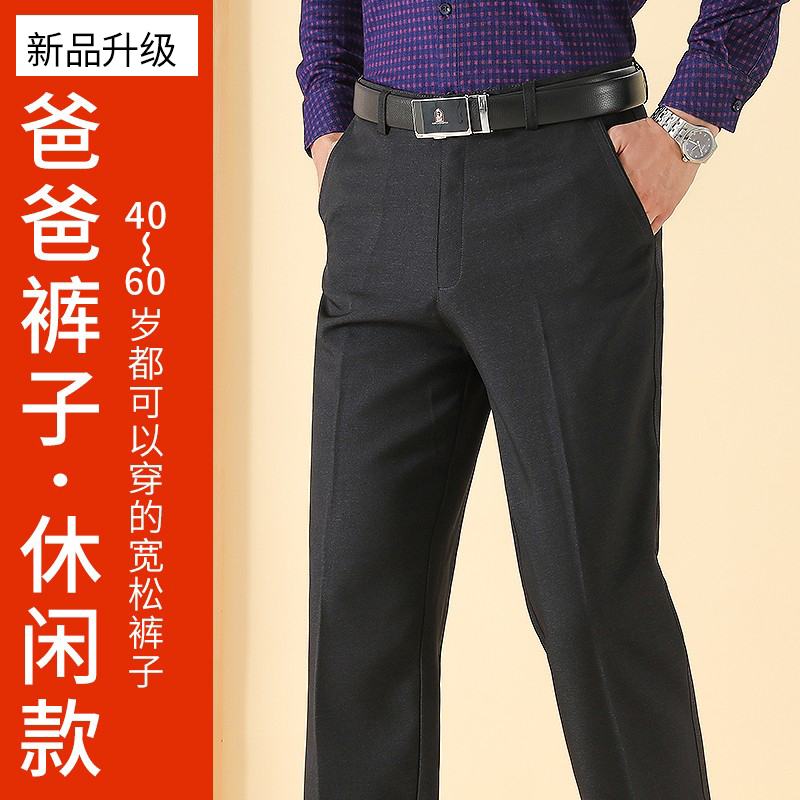 Dad Spring and Autumn Pants Middle-aged Men's Men's Pants Autumn Trousers 50-year-old Elderly Autumn Loose Casual Suit Pants