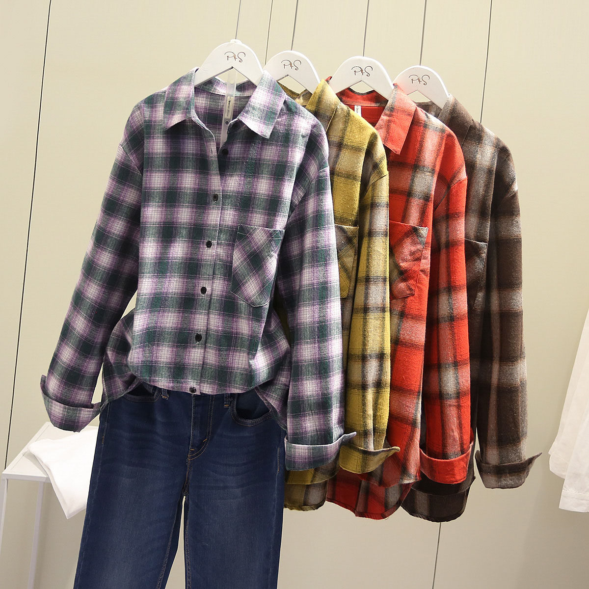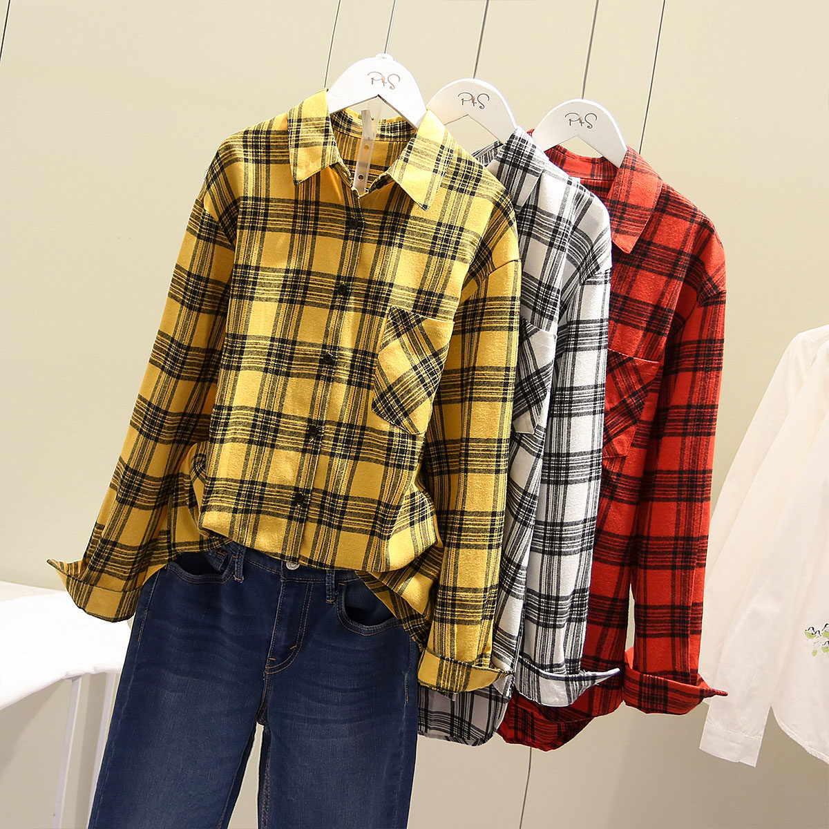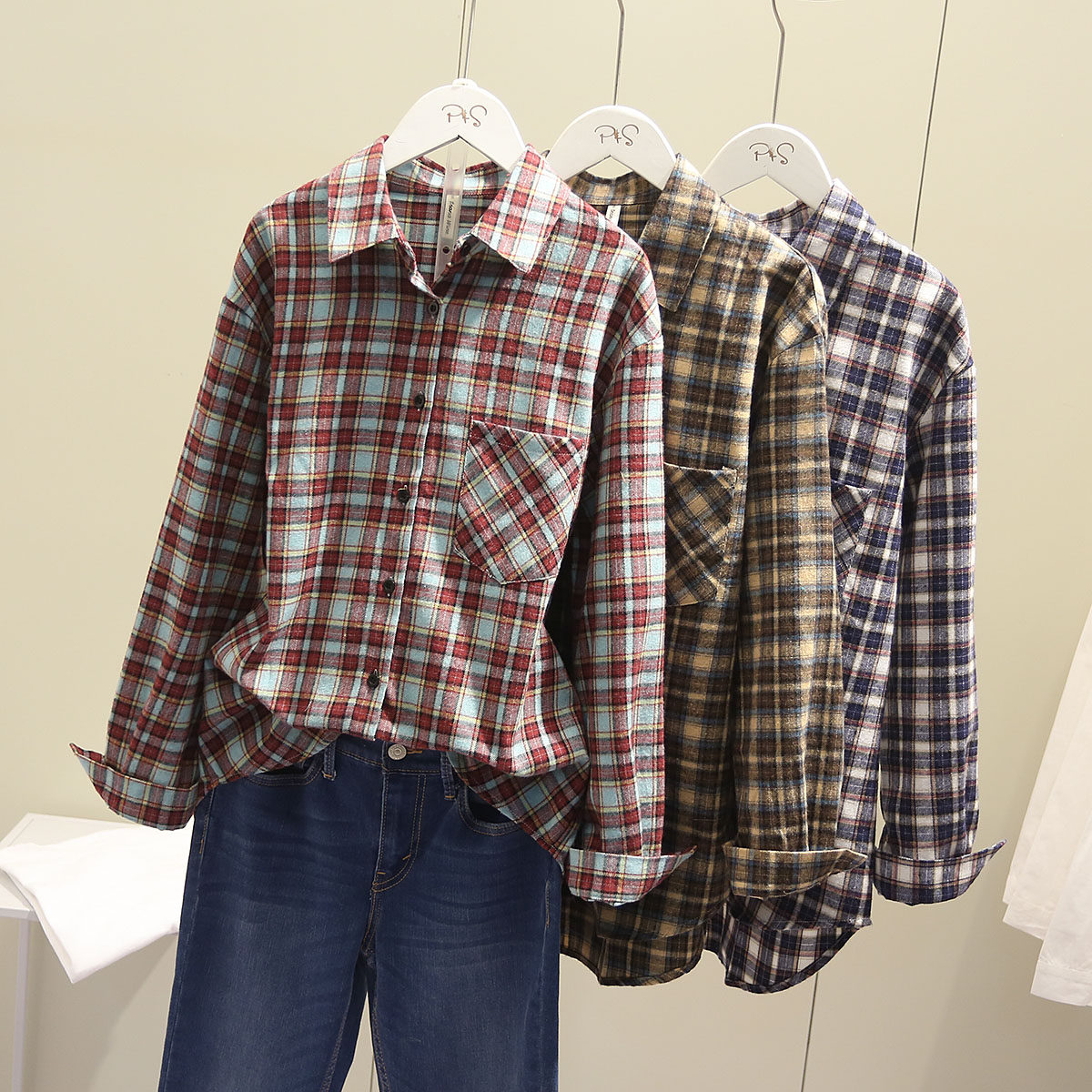 Autumn new women's clothing Korean version loose and thin casual plaid shirt retro BF style shirt Hong Kong style top coat