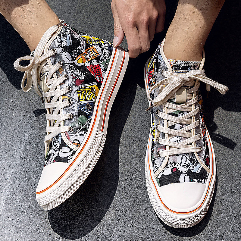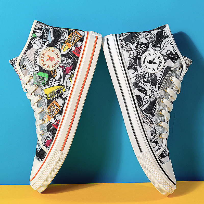 Floral Playboy men's shoes Summer high cylinder sails shoes Breathable Shoes Man Tide Shoes 2022 New trendy graffiti board shoes