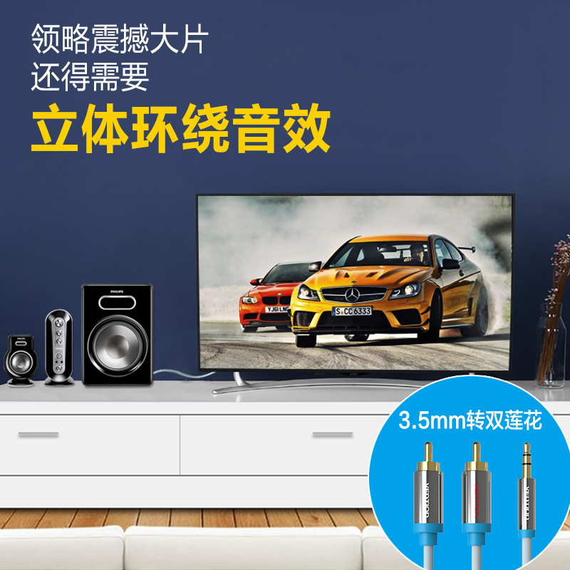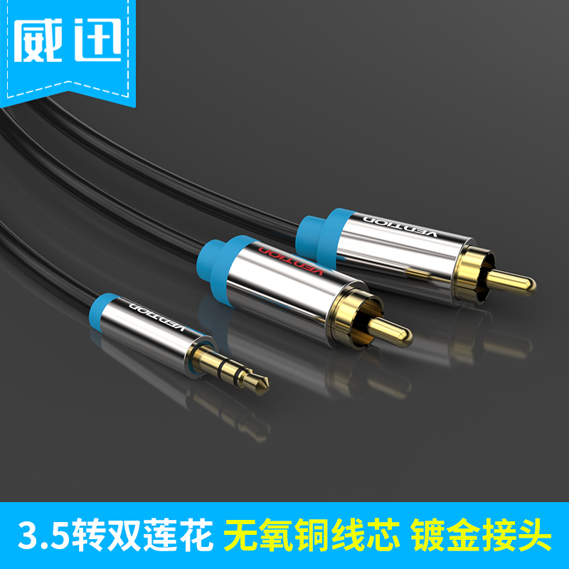 Weixun 1 minute 2 audio line 10% 2 3 5mm turn double lotus head phone sound computer speaker connection line 2 m