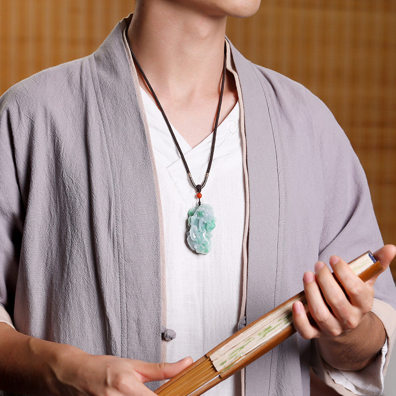 Xiang Zhenfu "Ruyi of Ruyi" Natural Emerald Pendant Spicy Yang Green Leaner Pendant Jade Sculpture Master Solitude