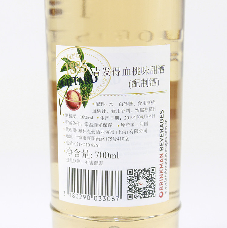 French import guitary Blood Peach Mouth Wine with Peach Taste sweet wine GIFFARD PECHEE DE VIGNE 700